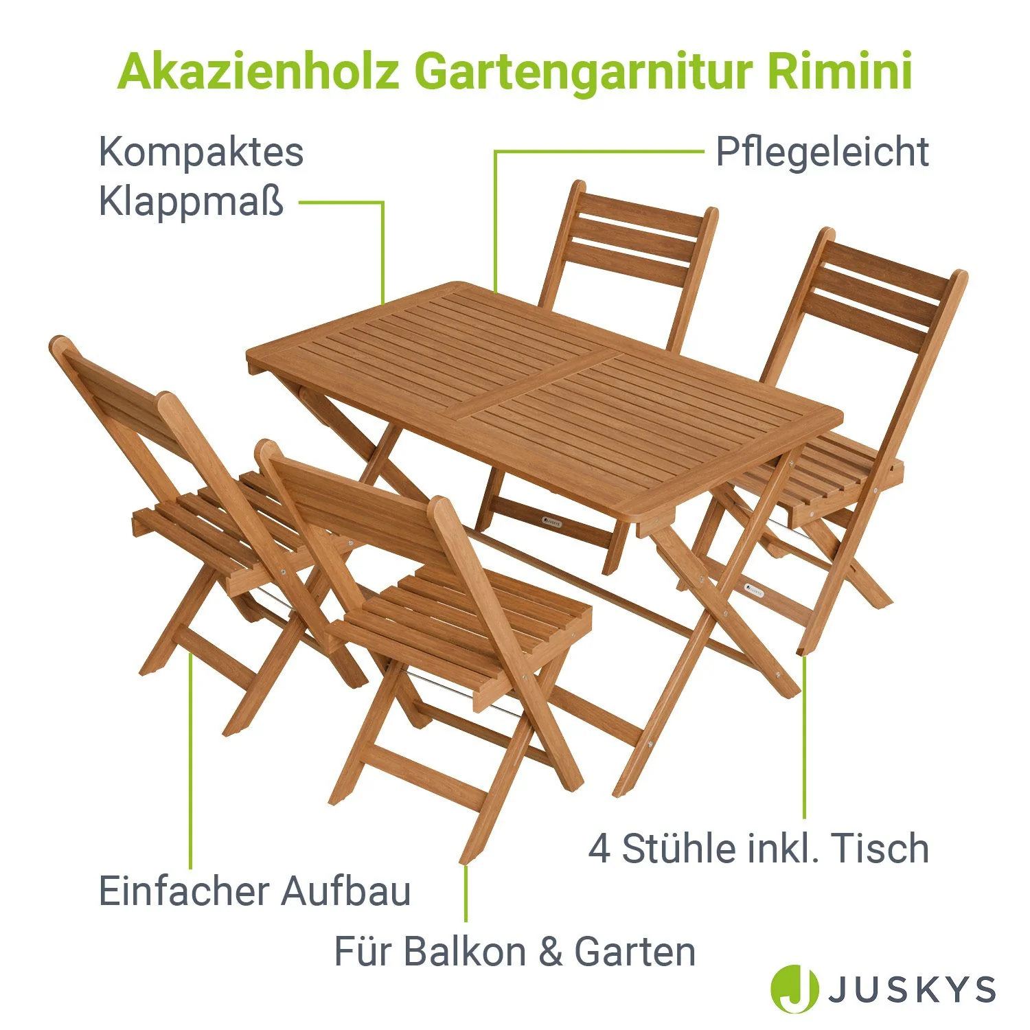 Robustes, vorgeöltes Akazienholz garantiert hohe Widerstandsfähigkeit und eine lange Lebensdauer des Sets.